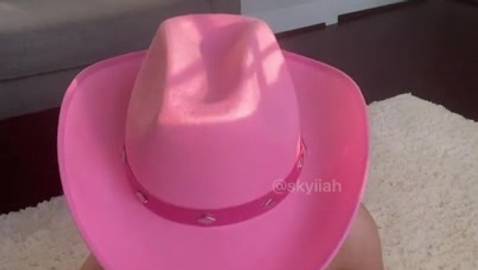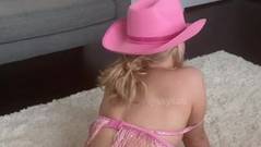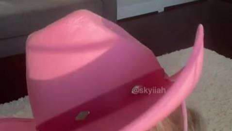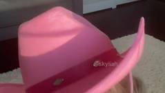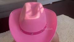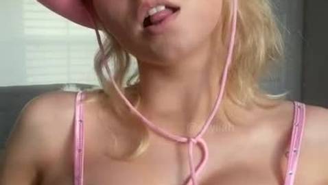 Temos certeza de que essa linda loira sente muito tesão toda vez que se mostra com seu chapéu rosa na webcam, pouco antes de se masturbar.