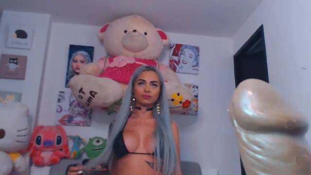 Isa Garciia, uma transexual com seios grandes, mostra como seu corpo é bonito e masturba seu pênis, na frente da câmera.