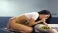 Jovem latina chupa o pau maior já visto. Garganta profunda voraz, depois se faz foder a buceta a fundo e engole todo o sêmen quente e cremoso.