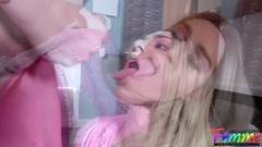 A transexual Brenna Knight é fodida usando seu vestido rosa