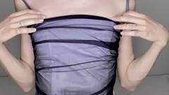 Morena trans bonita e esbelta faz poses sensuais na frente da câmera enquanto tira a roupa e finalmente pega um pau grande e o masturba com força!