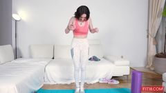 Gracie Gates, uma vadia que adora academia, é fodida no estilo cachorrinho e abre a boca para receber o esperma!