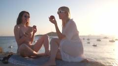 Um verdadeiro piquenique na praia com duas garotas nuas, Alissa e Lana