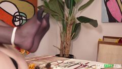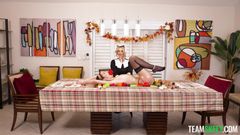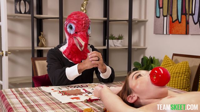 A jovem Della Cate veio jantar no Dia de Ação de Graças, mas ela é o peru. Ela se unta com óleo e está pronta para ser comida e fodida.