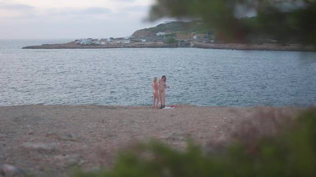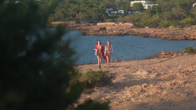Neste vídeo, uma morena e uma loira, Alissa e Mila, andam de mãos dadas com os peitos e a buceta de fora. Elas se sentam e podemos ver como são apertadas.