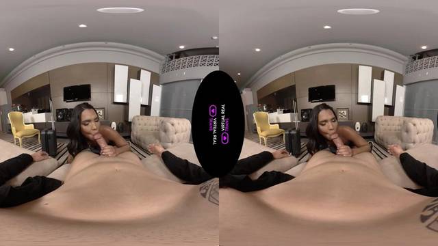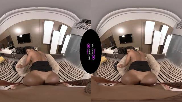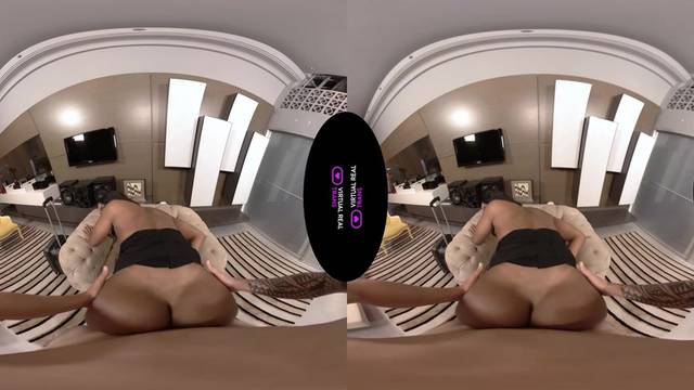 A bunda grande e preta da transexual Julie Rouch chama a atenção do seu homem, que vai se divertir com ela filmando-a em POV enquanto a fode neste pornô VR