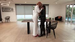 Uma transexual tão elegante deve foder muito bem e é por isso que a garota sentirá que está no seu melhor momento possível. Eles se beijam com loucura e prazer.