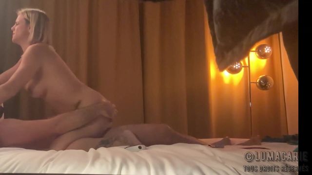 Até com os dedos, este cara fode a loira Lumacarie na cama sem se importar que todo o mundo os está vendo através das suas redes sociais.