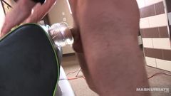 Alexandre musculoso lubrifica seu pênis e transa com um brinquedo sexual