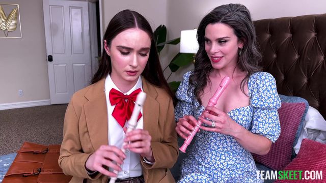 Depois de uma lição de flauta, a MILF Nicole Emma Vaunt não consegue resistir a Hazel Moore! Ela quer lamber a cara dela e comer a cona dela.