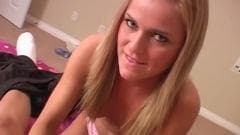 Esta é uma sessão de masturbação muito excitante que essa jovem loira paga pra seu namorado, enquanto ele filma tudo em POV.