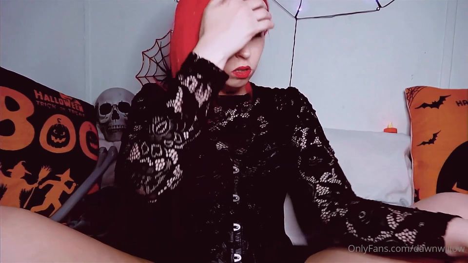 Essa garota é linda, mas está fantasiada para o Halloween, com dentes de Drácula, e começa a se masturbar com um vibrador só para nos entreter.