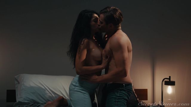 Após uma quente e deliciosa cena de beijos apaixonados, Nathan Bronson começa a despir Harley Haze, depois se deita para comer sua buceta suculenta