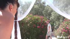 A avó viu o novo jardineiro e o levou ao jardim, começou a falar com ele amigavelmente, mas tudo o que ela quer é foder porque se sente com calocha.