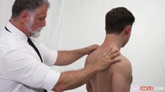 Este velho é um DILF dominador que tira a roupa deste jovem misionero, revelando seu corpo peludo. Depois o põe de quatro e começa a comer o cu