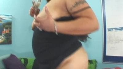 Esta morena bbw está excitada e porque está sozinha ela se sente vontade de se masturbar pelo que recebe seu grande pênis em sua buceta...