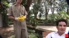 Amanda Torres está com Bruno Felix e Stygmata Stulazch, um dos dois homens é o jardineiro e também quer participar nesta sessão de sexo quente.