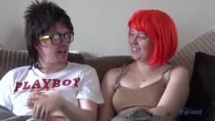 Esta ruiva de aspeto inocente vai de joelhos e coloca um pênis na boca, sugando até ficar cheia de esperma, para depois engolir...