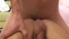 Um casal gay desfruta da sodomia no sofá hoje como está montando sem camisinha e não podem esperar para se encher com esperma quente e pegajoso...