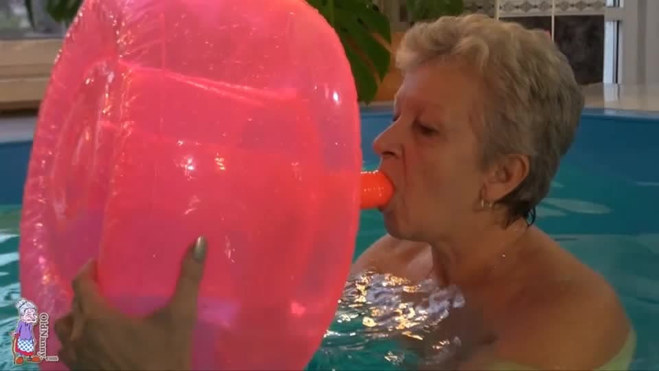 A avó vai na piscina antes de se masturbar