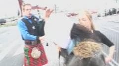 Uma sessão com duas mulheres muito tesudas que encontram um jovem vestido com um kilt, ficam muito animadas e levam-no para casa pra foder.