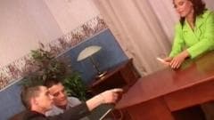 Esta ruiva é dona de uma grande empresa e está procurando dois novos funcionarios, por isso, faz uma entrevista e descobre que são bissexuais.