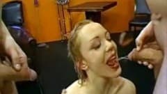 Esta mulher gosta tanto de comer esperma que ela vai recolher tudo o que puder antes de engolir.