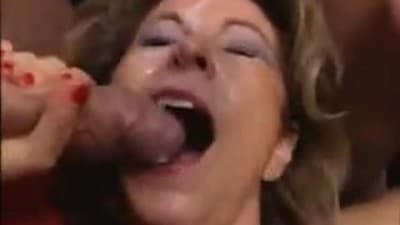 Uma mulher madura em seu primeiro gang bang