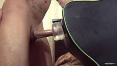 O Zack muito musculado esta se escondendo atrás de uma máscara para mastubar sua grande rola dura até a ejaculação tao esperado.