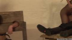 Temos escravos e dominantes ! Um chupa dois gajos de joelhos, outro lambe os pés de uma morena e outras brincam com um homem muito excitado.