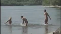Esta loira banha-se no lago com seus dois amigos bissexuais, que se dispõem a transar com ela para poderem obter o máximo prazer sexual!