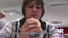 Um jovem Homossexual vai fazer um lanchinho no shopping, só que depois ele que é lanchado. Paga um belo boquete no banheiro