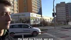 Esta mulher está muito interessada em ganhar algum dinheiro e, portanto, aceita a proposta indecente desses dois caras que querem sexo oral.