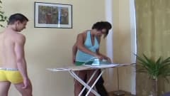 Depois de fazer o trabalho doméstico, essa morena recebe a visita de seus dois amantes, que são bissexuais,com quem ela forma um bom trio sexual.