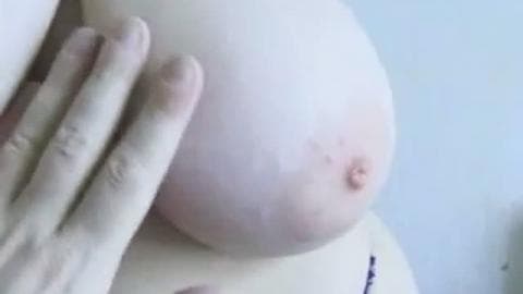 Ele acaricia seus grandes seios naturais !