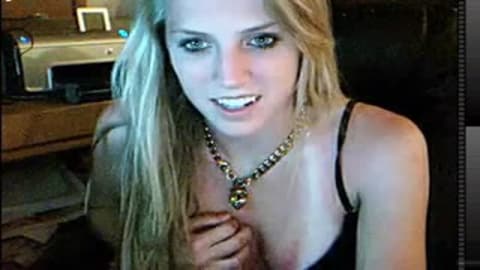 Loira muito bonitinha e bronzeada tira a roupa toda e mostra as marcas do biquini e por fim se masturba para a webcam.