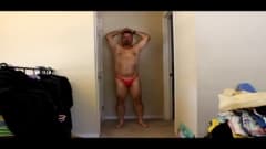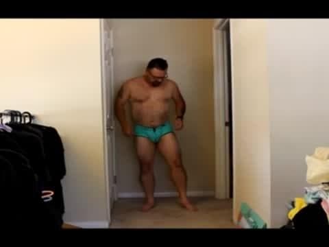 Este homem vai gostar de nos mostrar toda a sua roupa interior. Ele o coloca e tira, revelando seu pênis nessa cena amadora.