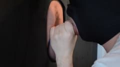 Este homem mascarado se ajoelha na frente do buraco, de onde sai um pau muito misterioso. Ele vai querer chupar tudo!