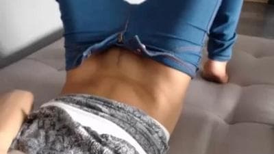 Esta é uma linda garota dando um grande show. Ela mostra com ciúme sua buceta raspada sem tirar o jeans. O melhor está por vir!